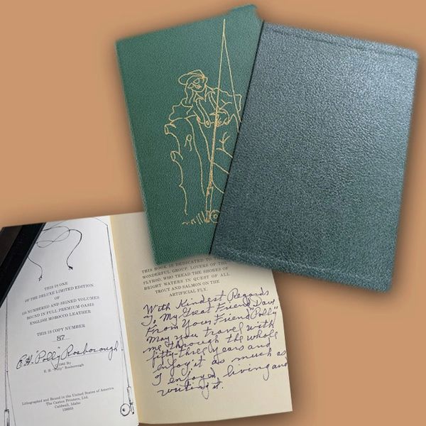 This 1st edition book is # 87 of 150. Inscribed by the author to Dave Inks. A wonderful book written for the group of lovers who tread the shores of bright waters in the quest of all trout and salmon. Authour E. H. "Polly" Rosborough. Contact us for moe information and pictures.